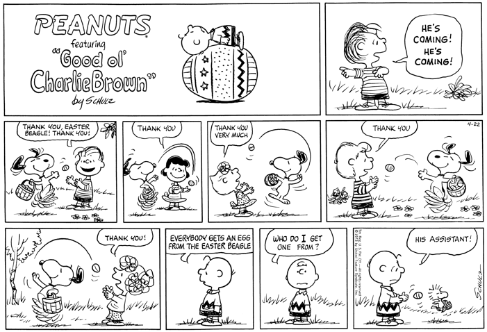 - After two more Easter Beagle strips in 1975 and 1976, the character made his last appearance on April 7, 1985—when Sally got the Charlie Brown treatment.