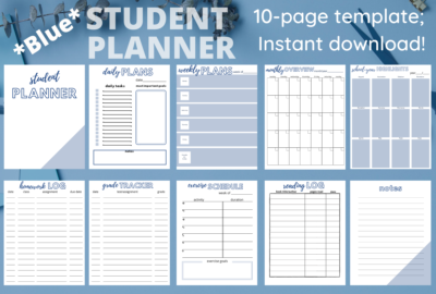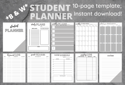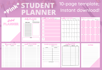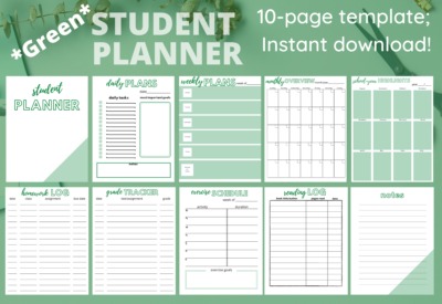 With this 10-page digital planner (that comes in 5 colors: green, red, pink, black and blue), students can plan their days, weeks, months, and academic school year. They can also track their grades, homework, exercise and reading.