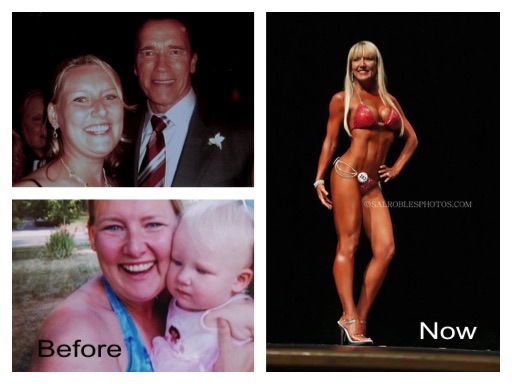 The candid mom admits that just a few short years ago her life was a mess. Her business was failing; her marriage was failing and her doctor told her she was borderline obese. As a last ditch effort, at age 38 and size 14, she entered a bodybuilding bikini competition and it changed her life. “…I learned about nutrition and strength training—while potty training my son. My trainer pushed me past all those very valid reasons—I’m too old, I don’t have enough time, I’m a mom—and made me realize that those were just fears and I needed to stop lying to myself. Anyone who looks at my ‘before’ picture knows I don’t have special genetics. I was never involved in sports at all until my 30’s and didn’t start bodybuilding until I was 38. So many women think if they are over the age of 25 or have a family their best years are behind them, but that’s total BS. At 42 I’m in the best shape of my life and have won bikini competitions, and if I can do it, hell yeah, so can anyone!”